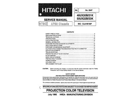 Presently you are looking regarding an Hitachi 50ux22b 23k Projection Color Television Repair Manual example that will we provide here within some kind of document formats like as PDF, Doc, Strength Point, and in addition images that will will make it easier for you to create an Hitachi 50ux22b 23k Projection Color Television Repair Manual yourself. For a clearer look, you are able to open several examples below. All the illustrations about Hitachi 50ux22b 23k Projection Color Television Repair Manual with this website, we get from several sources so you may create a better record of your own.If the search you obtain here does not complement what you are searching for, please use the search feature that we have got provided here. You are free to download something that we provide in this article, expense cost you typically the slightest.